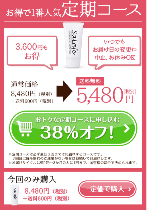 サラフェの公式サイトの価格は、定期コースで5,480円 1回限りの購入でも8,480円